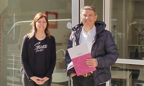 The representative of Global Equipaments, Clara Rodríguez, with the head of Promotion of IRBLleida, Josep Maria Bosch.